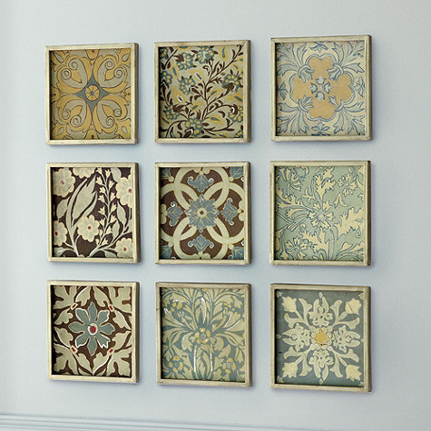 Next, it is time to pick your images for inside the frames. I was wanting a look like the ones from Ballard, and also wanted them to look like fabric. The cheapest way to get this look is to go on a fabric retail website and print the pattern images that you like best right off of your computer
