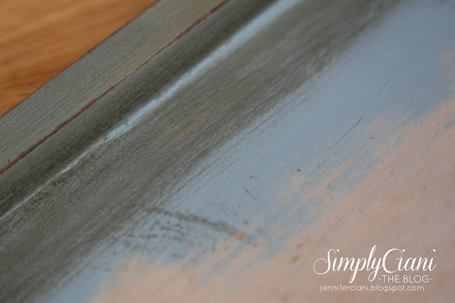 After painting, give the frames a light sanding down with regular sand paper, scuffing up the edges and wearing it down a bit to give it a distressed look