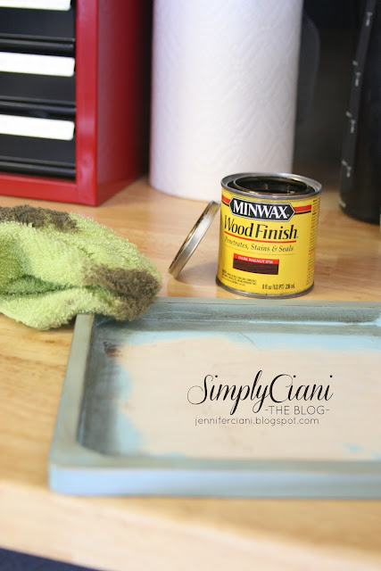 So of course, I set out on my own way to re-create what I fell in love with on a budget. I went to Michael's and found these plain wood frames in the wood crafting section for under $2 each. Being that my dining room has accents of blue, I chose to paint the frames in a soft robin's egg blue, but you could choose any color that you prefer.