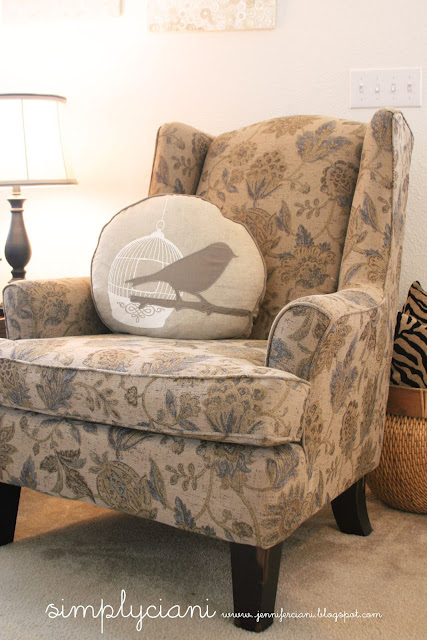 This little corner is where I spend the most of my time: The glider and ottoman were also a great purchase that was a floor model closeout at Babies R' Us. It is so comfortable and I have spent many long nights rocking baby in it, I would say it's my most favorite piece of furniture in our whole home! (update: I have gotten so many questions about what brand this glider and ottoman are, so below I have linked THIS ONE from Amazon since Babies R' Us no longer exists)