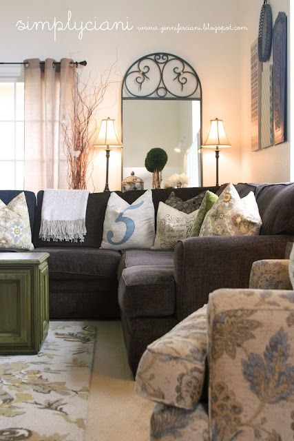 add in some new pillows, rug, mirror, ottoman/ table cube, and accessories and you have a whole new look! And all on a budget