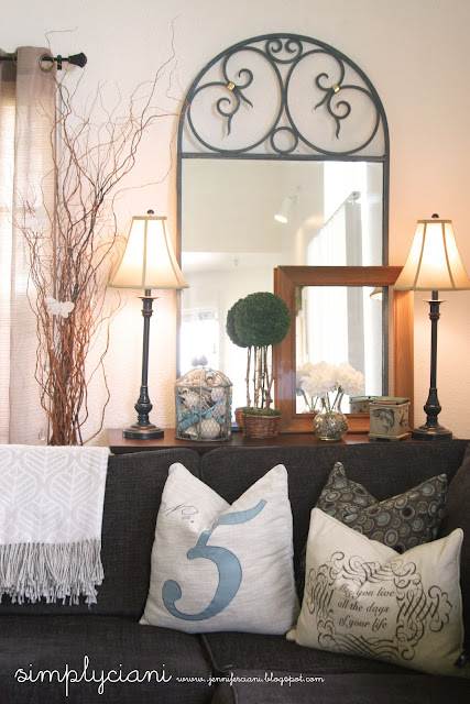 I have often found myself searching through home decor magazines and always wonder... "How can I get my living room to look like THAT?!" Every page is filled with rooms which look perfectly put together yet comfy and lived in all at the same time. Being that the living room is the first room that you see when you enter our home & where we spend the most of our time as a family, watching TV, playing, reading, etc... it becomes the room which I analyze the most. I feel as if it is never done, and quite possibly never will be. Over the past few weeks I have gathered magazines and inspiration to "spruce up" our living room and add some character & on a BUDGET!