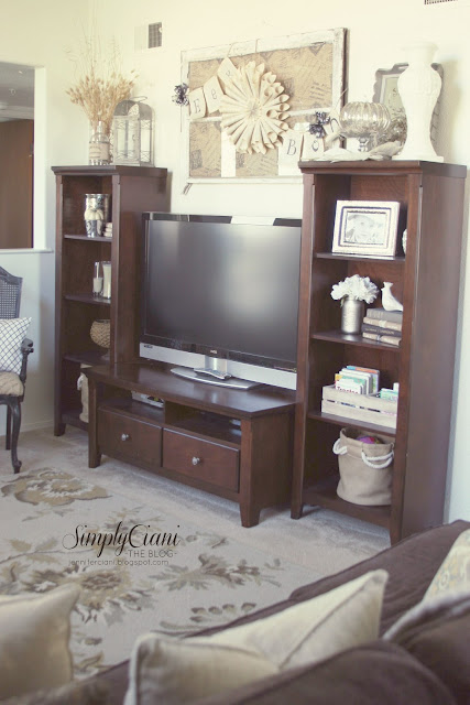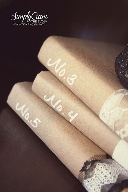 After looking at my bookshelves, I knew I needed something more to fill them up with, but the books that I had didn't match my decor, so I covered them using brown craft paper & lace ribbon.